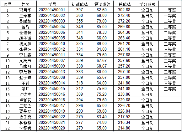 我院2021-2022学年度研究生学业奖学金评选已经结束,现将评选结果公示如下,公示期2022.9.24-2022.9.26。如对评选结果有异议,请于公示期内反馈至beat365英国官方网站学科建设办公室,地点:第一办公楼512,电话:87655766。