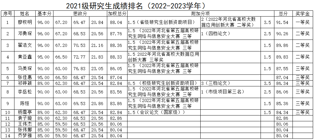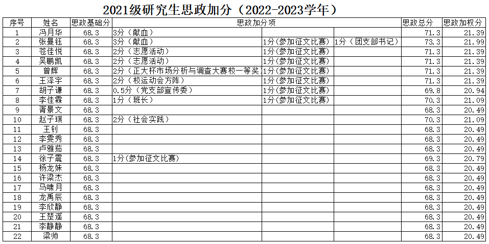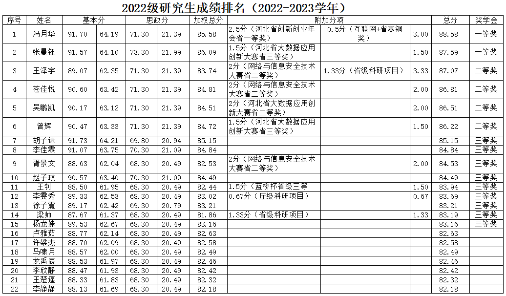 我院2022-2023学年度研究生学业奖学金评选已经结束,现将评选结果公示如下,公示期2022.9.12-2022.9.14。如对评选结果有异议,请于公示期内反馈至beat365英国官方网站学科建设办公室,地点:第一办公楼512,电话:87655766。