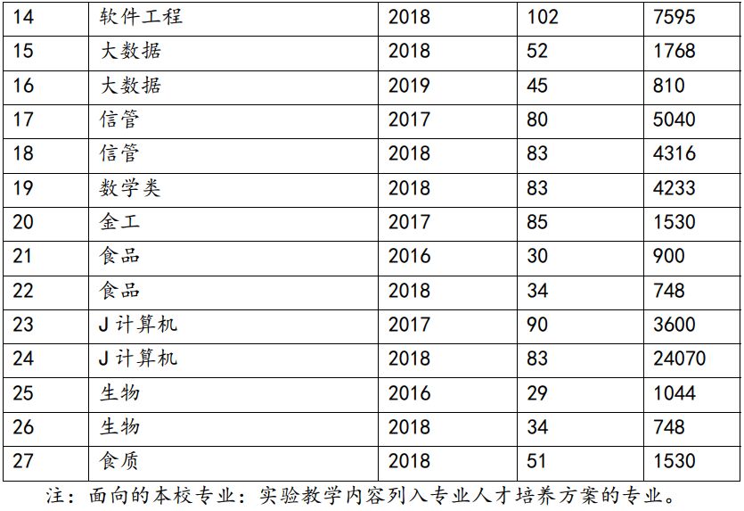 (一)示范中心实验教学面向所在学校专业及学生情况