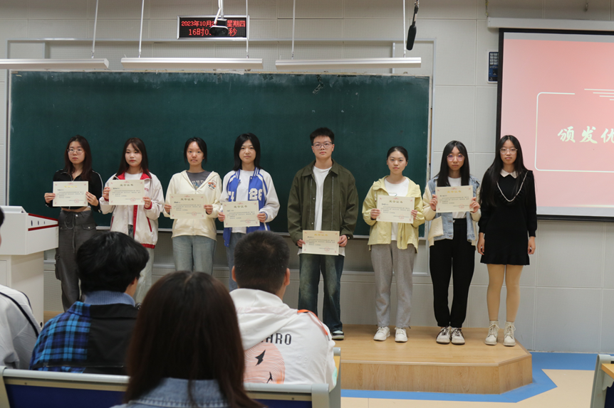 首先,周慧鋆组织全体青马班成员合唱团歌,并由刘春雨对本期青马工程进行总结。随后,各青马班团支部书记,团支部副书记代表全班学员上台领取结业证书并为优秀学员颁发证书。最后,全体青马班成员观看以往课程视频,回忆青马工程进行时的日常点滴。