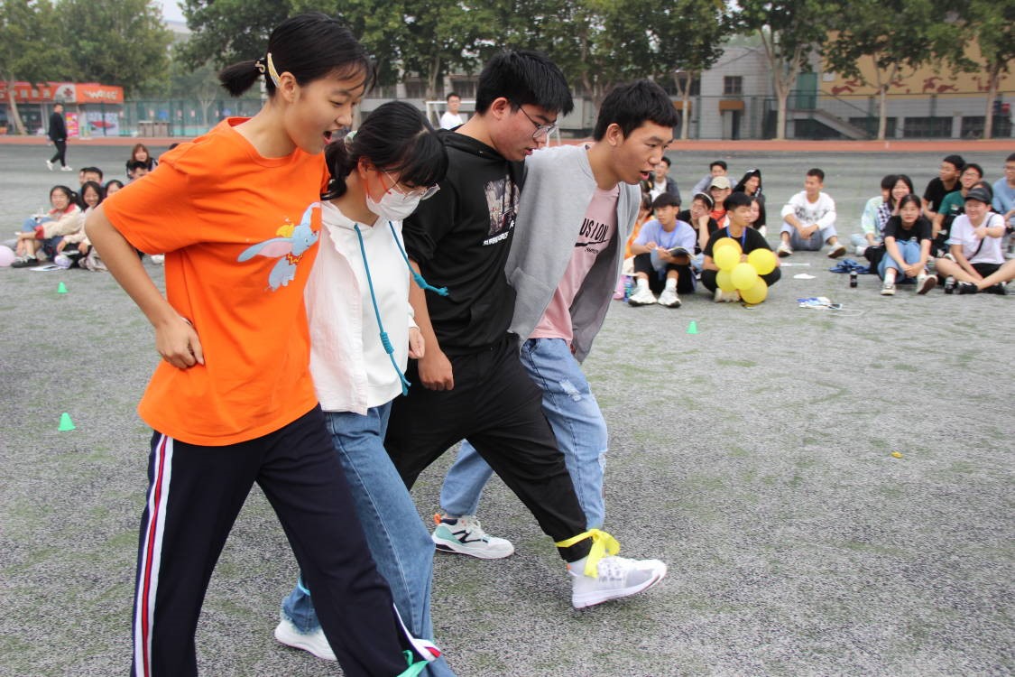 运动会前,梁旭辉再次对2021级全体新生的到来表示欢迎,并预祝此次活动圆满成功。本次趣味运动会以“青春活力迎国庆,趣运会上喜逢秋”为主题,共包括“齐心协力”“蒙眼寻觅”“袋鼠跳”“抢凳子”“呼啦圈连连看”“踩气球”六个环节。在“齐心协力”环节,各队队员齐心协力,保持口令一致、步调一致、节奏一致,顺利地完成了比赛项目;在“抢凳子”环节,参赛选手们需在音乐结束时抢夺凳子,比赛过程可谓紧张而刺激。选手们均热情高涨,凭借灵敏的反应、矫健的身手,赢得现场观众们的阵阵掌声;在踩气球环节,队员之间配合默契,在保护自己队友的同时找准时机进攻对手,其中大数据一班的三名参赛选手战术得当,取得第一名的好成绩。