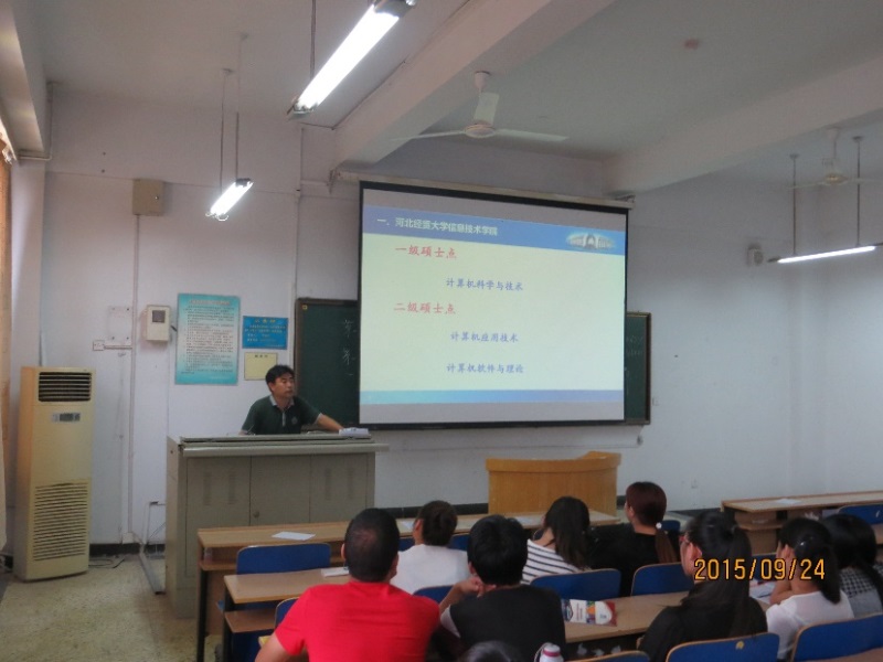 9月24日下午,beat365英国官方网站举办了硕士研究生招生宣讲会。首都经贸大学信息学院、河北大学计算机科学与技术学院以及我校beat365英国官方网站分别进行了招生宣传。beat365英国官方网站院长王素贞,院党委副书记王光辉、副院长张荣梅出席,2012级本科生和部分2013级学生参加了宣讲会。
