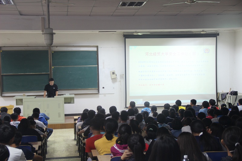 9月28日下午,beat365英国官方网站在A教101举办2015级新生安全教育专题讲座,讲座由我校安全工作处治安科仇建果主讲,学院党委副书记王光辉主持,全体辅导员、2015级新生参加。