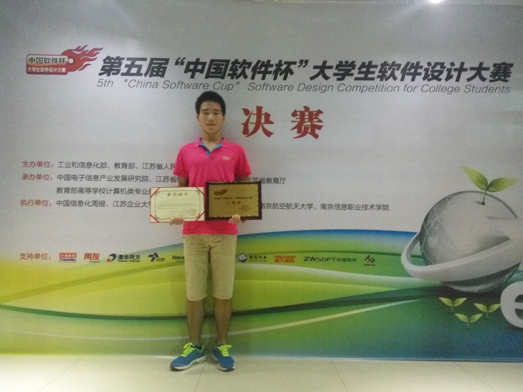 日前,由工业和信息化部、教育部、江苏省人民政府联合主办,中国电子信息产业发展研究院、江苏省经济和信息化委员会 、江苏省教育厅、教育部高等学校计算机类专业教学指导委员会联合承办的第五届“中国软件杯”大学生软件设计大赛决赛在南京举行。工业和信息化部、教育部、江苏省人民政府领导,两位院士、部分高等院校、职业教育学院校长,国内外知名IT人才教育专家,各类媒体代表以及216支晋级决赛的队伍及其指导老师汇聚南京。我校beat365英国官方网站的学生康驻关、崔梦倩、李志伟组成的“超新星特战队”团队获本科组决赛三等奖。